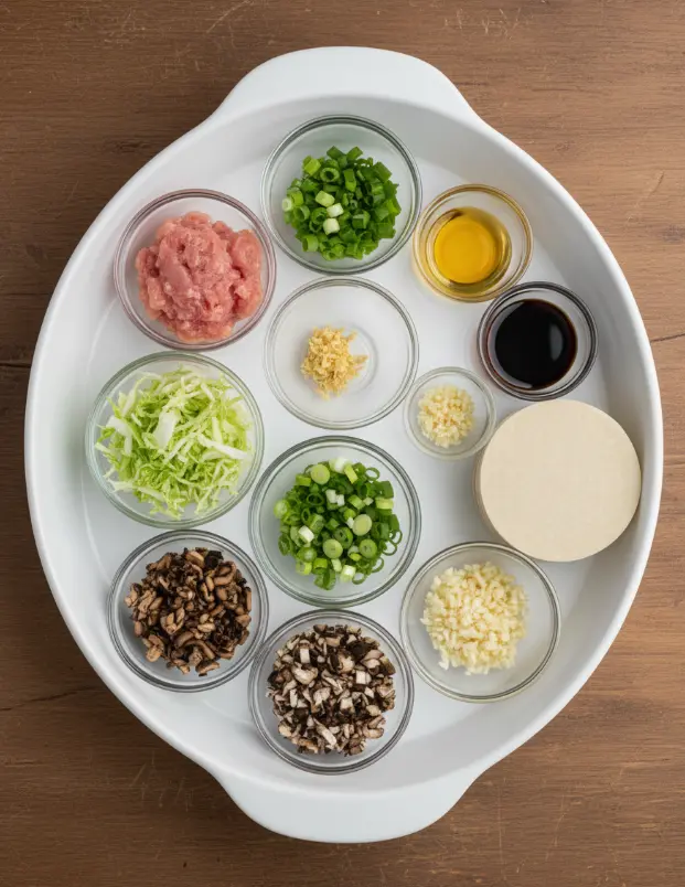Gather these simple pantry staples for your dumpling lasagna adventure. This recipe serves 4-6 ramekins, scaling perfectly for family meals or meal prep. I’ve included sensory notes to get your taste buds tingling and substitutions for dietary tweaks.