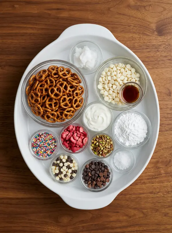 • 4 cups mini pretzels: Tiny twists for maximum crunch—use gluten-free pretzels if needed for dietary swaps.